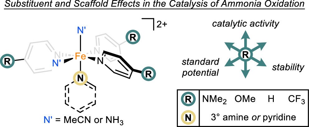 Improving Molecular Iron Ammonia Oxidation Electrocatalysts via Substituent Effects that Modulate Standard Potential and Stability