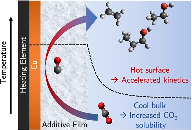 Electrode Surface Heating with Organic Films Improves CO2 Reduction Kinetics on Copper