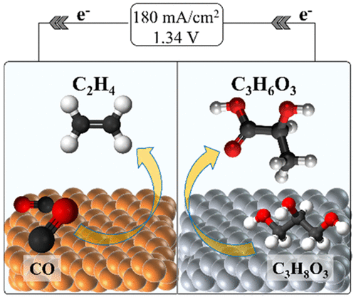 Glycerol Oxidation Pairs with Carbon Monoxide Reduction for Low-Voltage Generation of C2 and C3 Product Streams